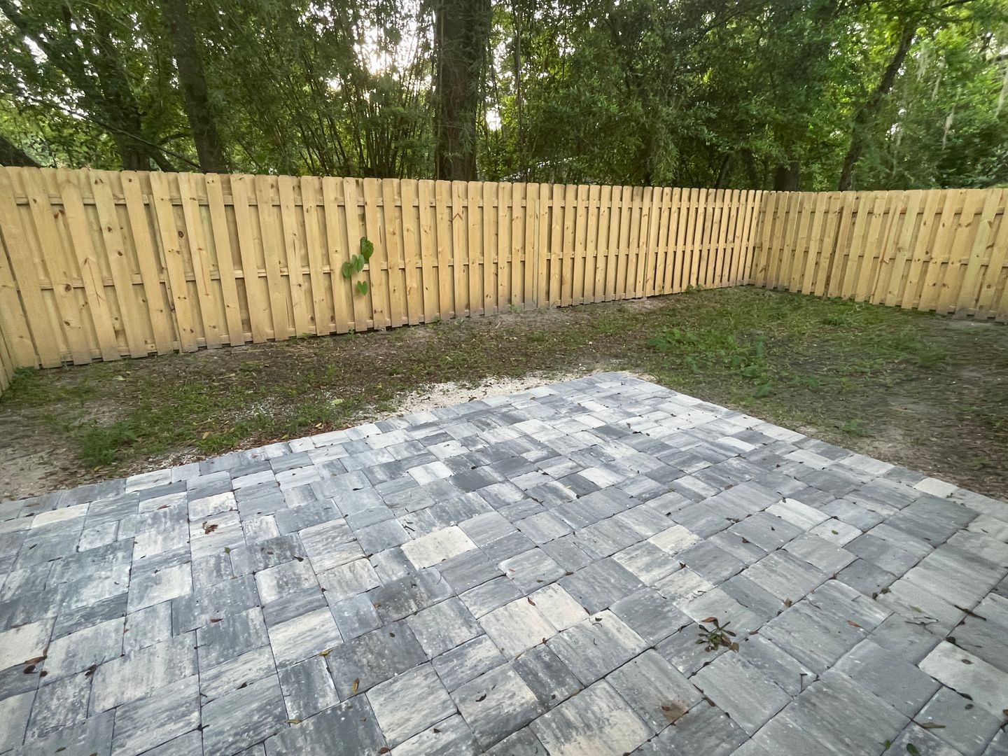 One of the highlights of this property is the spacious, fully privacy-fenced yard accessible through a door off the dining area. The yard is beautifully landscaped with gorgeous grey stone pavers and lush grass, providing a tranquil outdoor space for relaxation or outdoor activities.