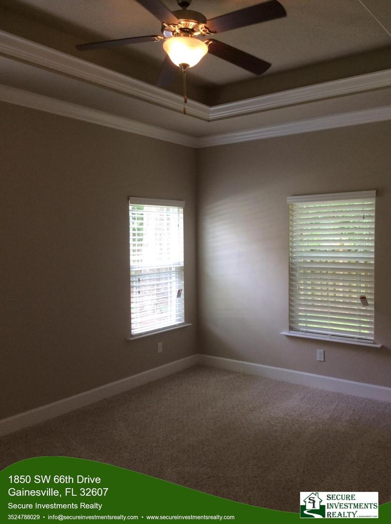 Beautiful newer home with a desirable split floor plan located in the quiet Portofino community, conveniently close to the University of Florida, Shands Hospital, shopping, dining, and entertainment. A welcoming front porch leads into the entry foyer and opens to a spacious great room featuring laminate wood flooring and high vaulted ceilings.
